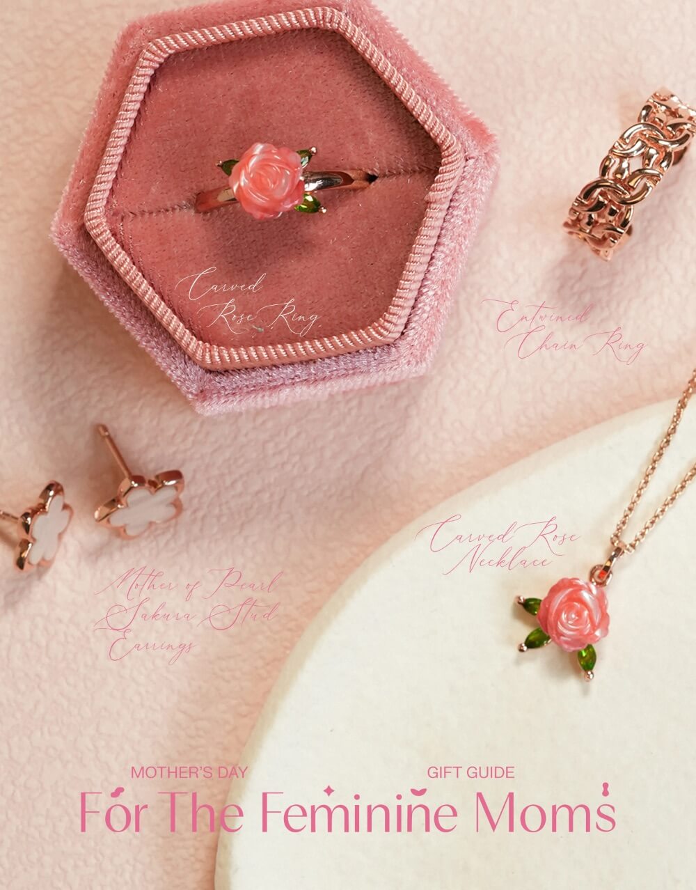 From intricately carved rose jewelry, symbolizing eternal love and delicate beauty, to entwined watch chain designs evoking the timeless bond between mother and child, each piece in this selection is a poetic ode to maternal love.