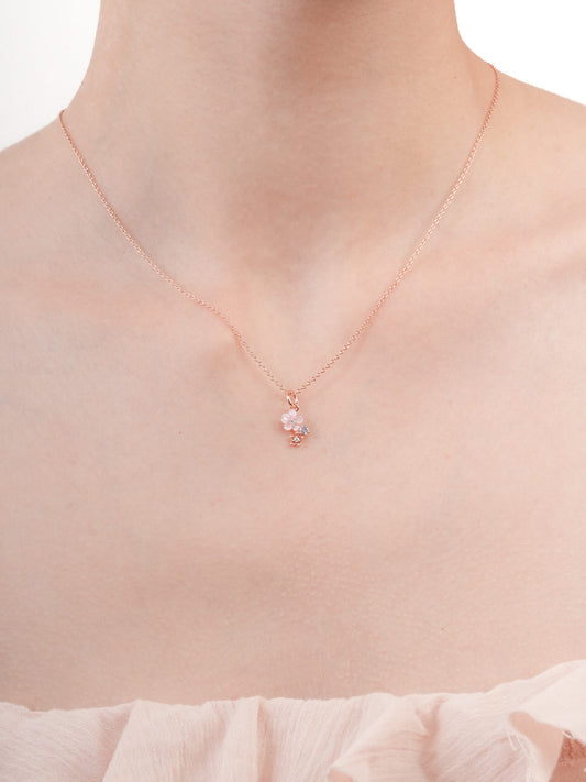 Dainty Pink Cluster Flower Pendant Necklace – MOP & Aquamarine