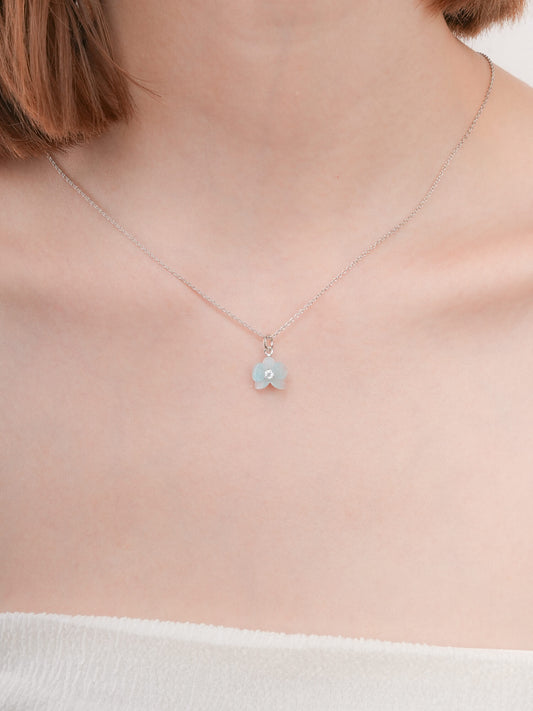 Blue Flower Necklace - Reversible Enamel Moissanite