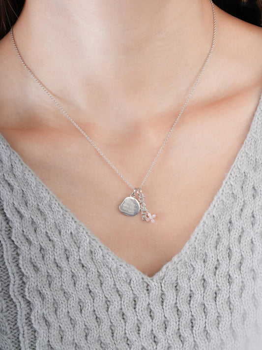 Pink Heart Necklace - Reversible Enamel Moissanite