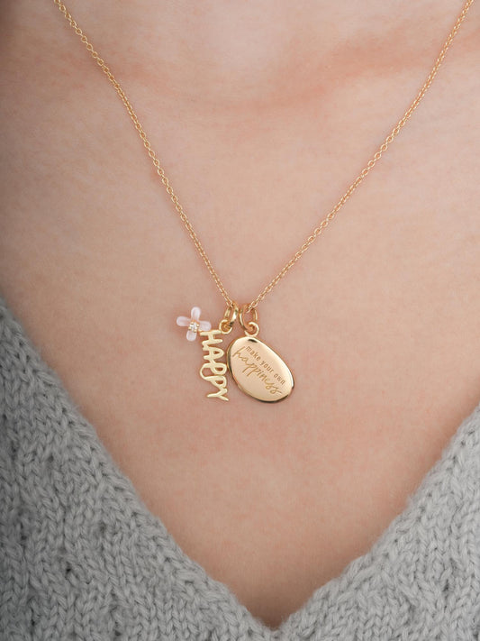 Smiley Face Necklace - Reversible Enamel Moissanite