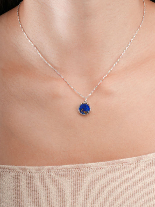 Blue Flower Necklace - Reversible Enamel Moissanite