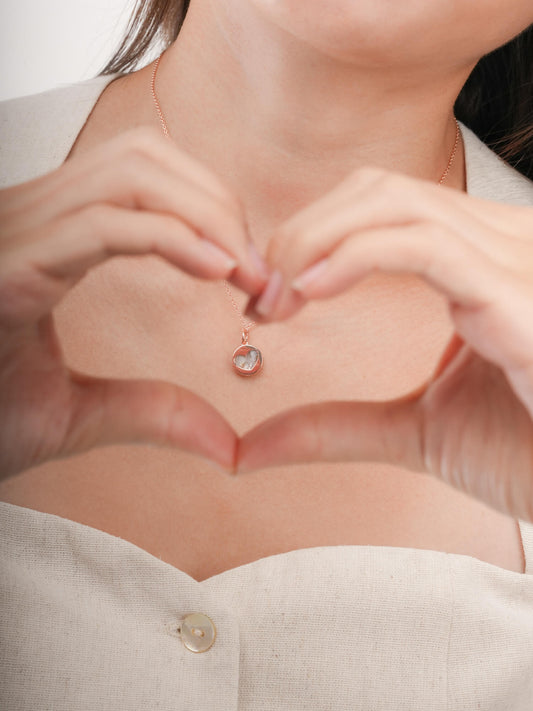 Pink Heart Necklace - Reversible Enamel Moissanite
