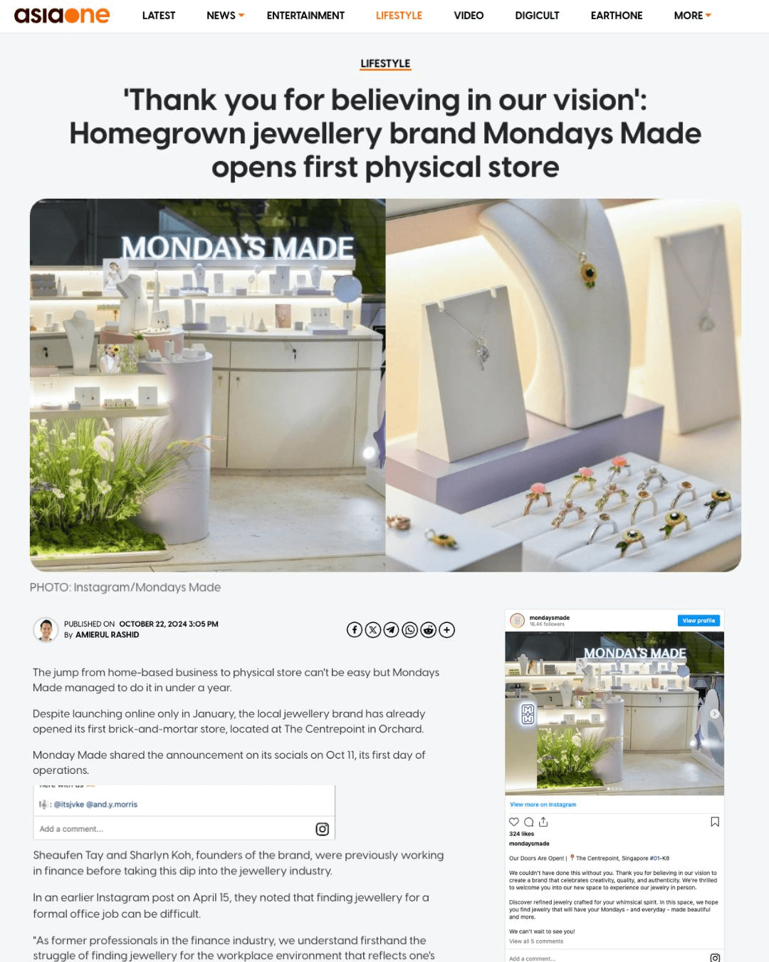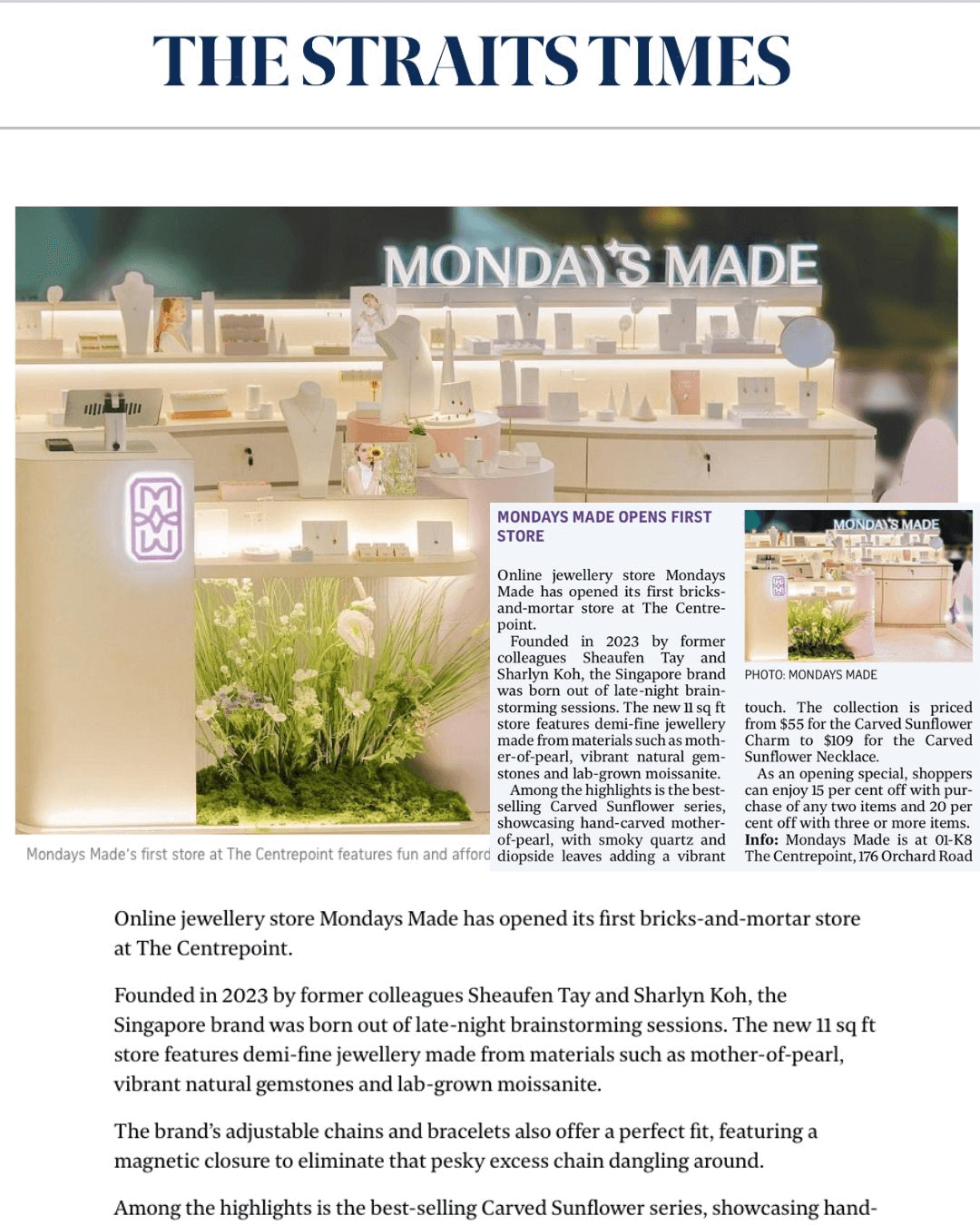 Whimsical Homegrown Jewellery Brand Mondays Made Opens First Physical Store at The Centrepoint