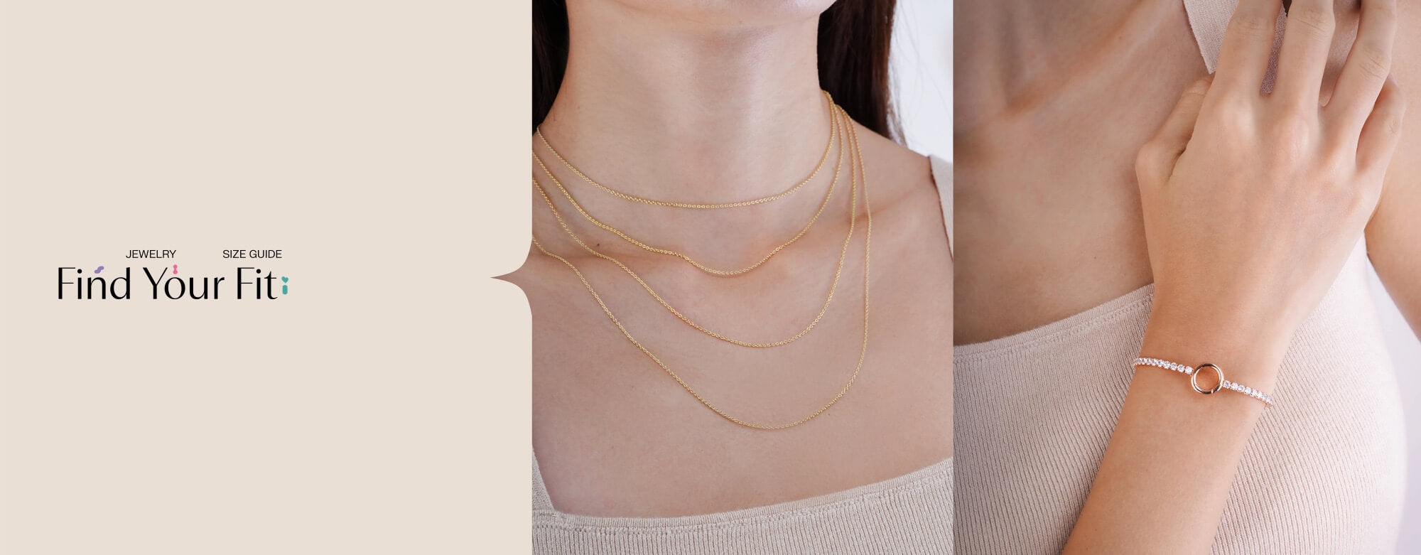 Determine your ring, bracelet and cuff size, and find out more on necklace lengths and hoop sizes that suit you best.
