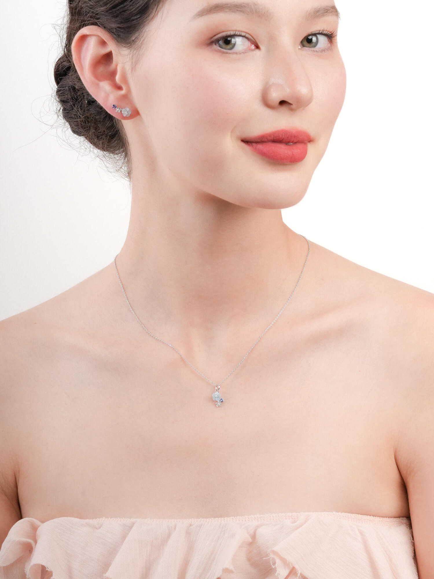 Dainty Blue Cluster Flower Pendant Necklace – Aquamarine & Tanzanite