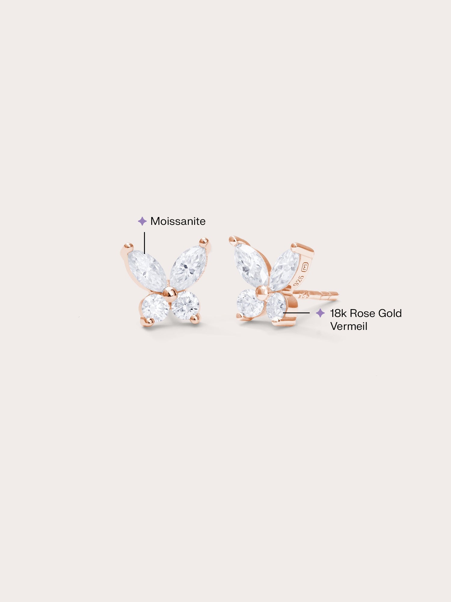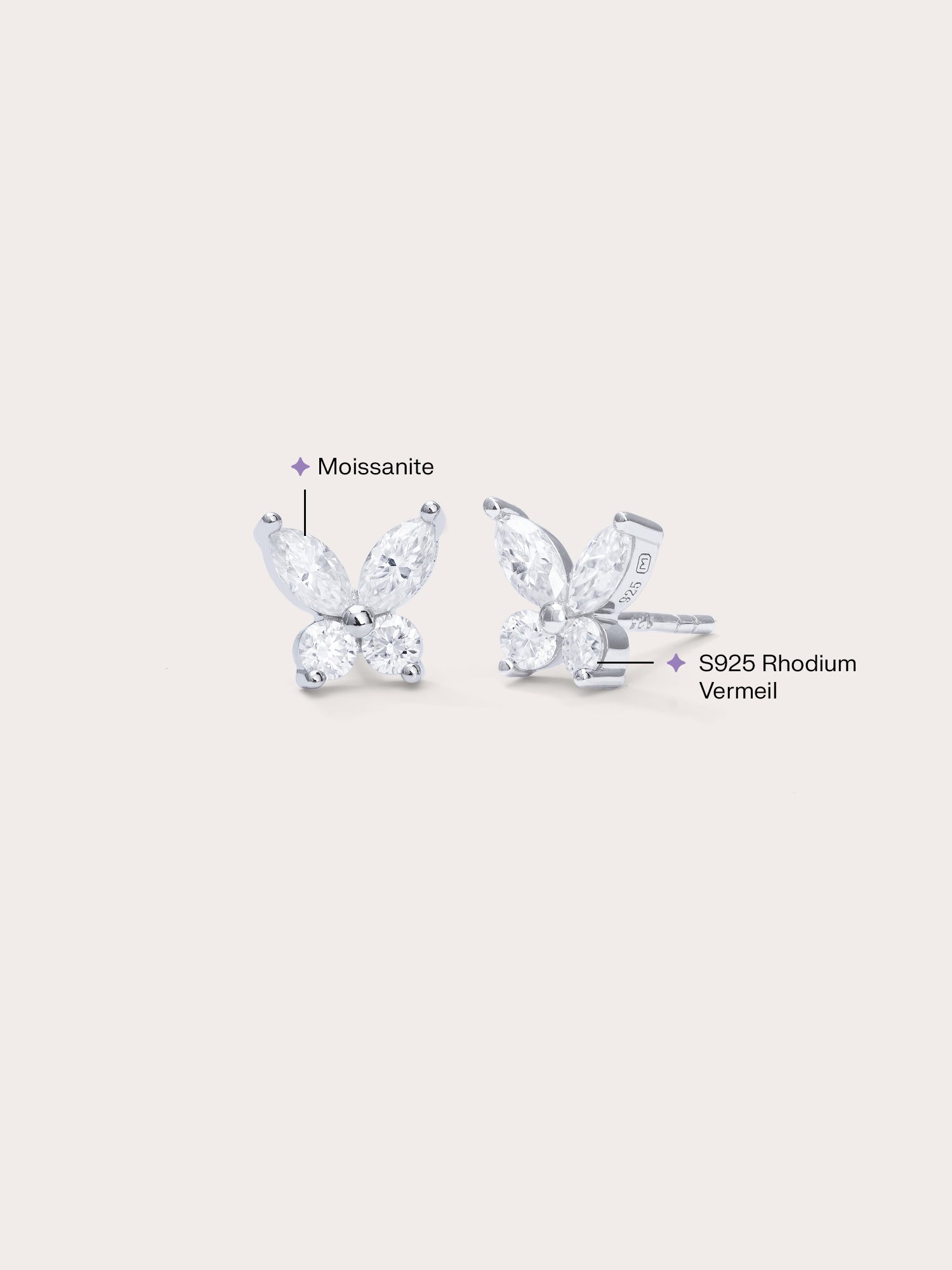 Our Moissanite Butterfly Stud Earrings is crafted from 18k gold vermeil, a premium material that offers superior durability and a luxurious finish. With a thick layer of 18k gold (at least 5 times thicker than standard plating) meticulously plated on s925 sterling silver, 18k gold vermeil provides: