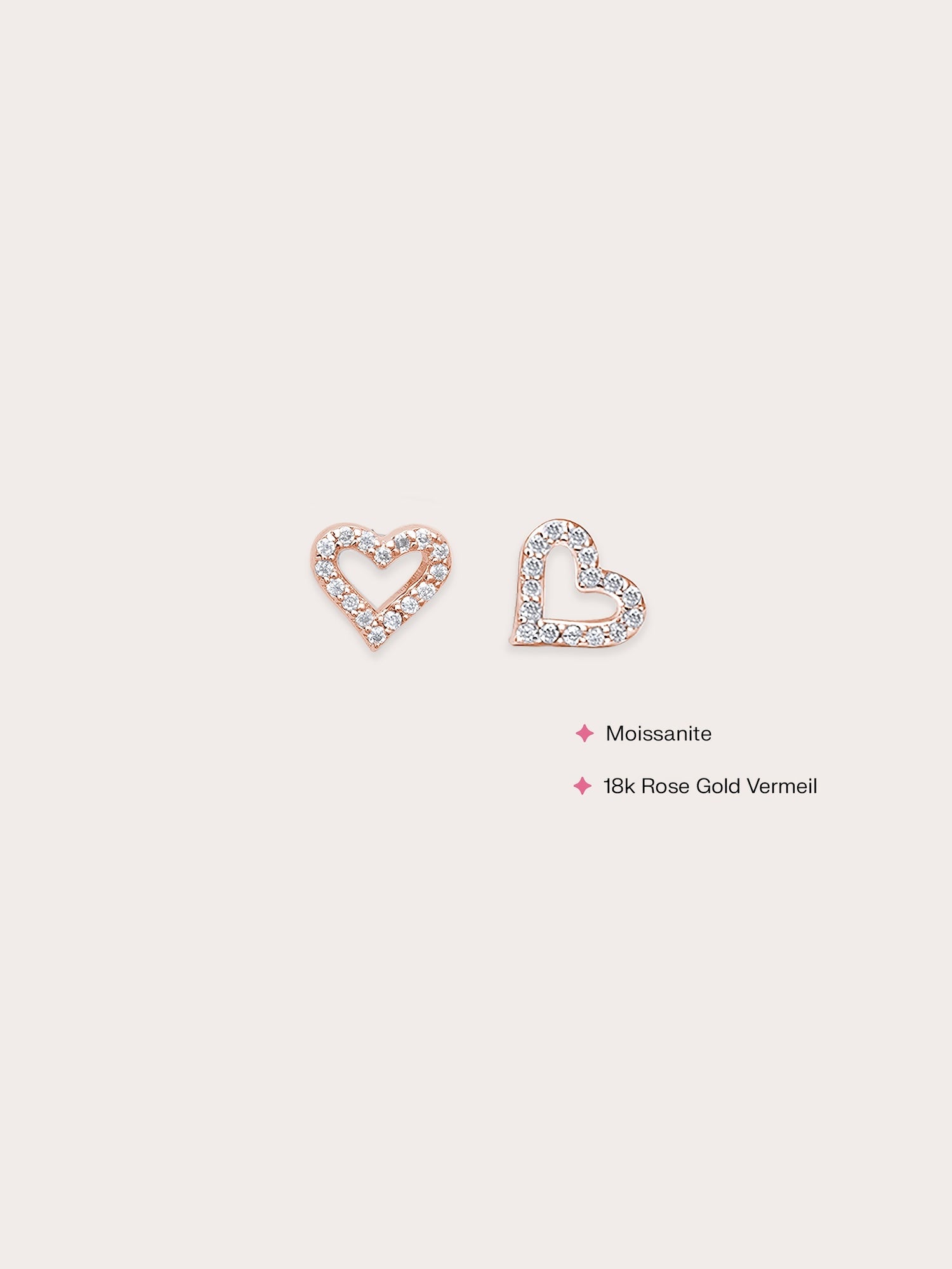 Delicate and easy to wear, these open heart studs are lined with pavé moissanites for a soft, refined sparkle.