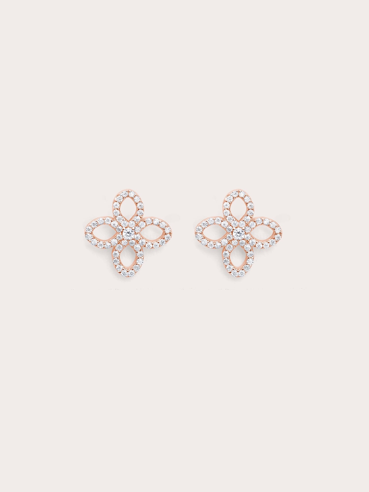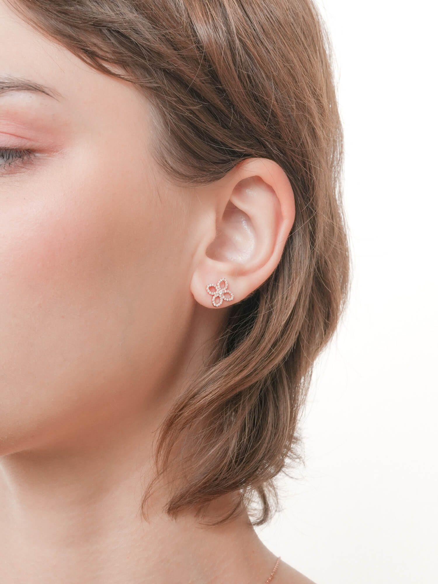 Our Pavé Moissanite Clover Stud Earrings is crafted from 18k rose gold vermeil, a premium material that offers superior durability and a luxurious finish. With a thick layer of 18k rose gold (at least 5 times thicker than standard plating) meticulously plated on s925 sterling silver, 18k rose gold vermeil provides: