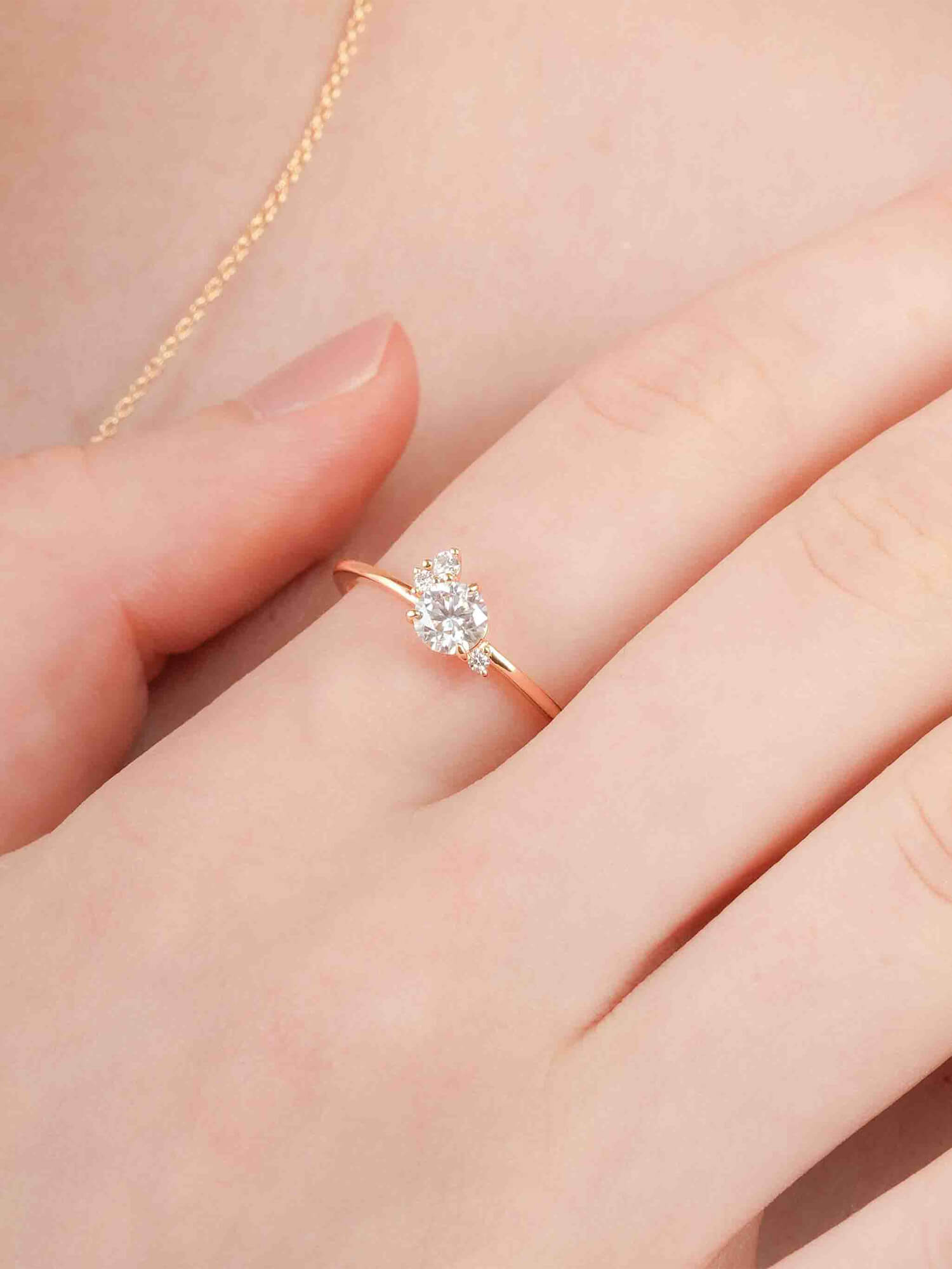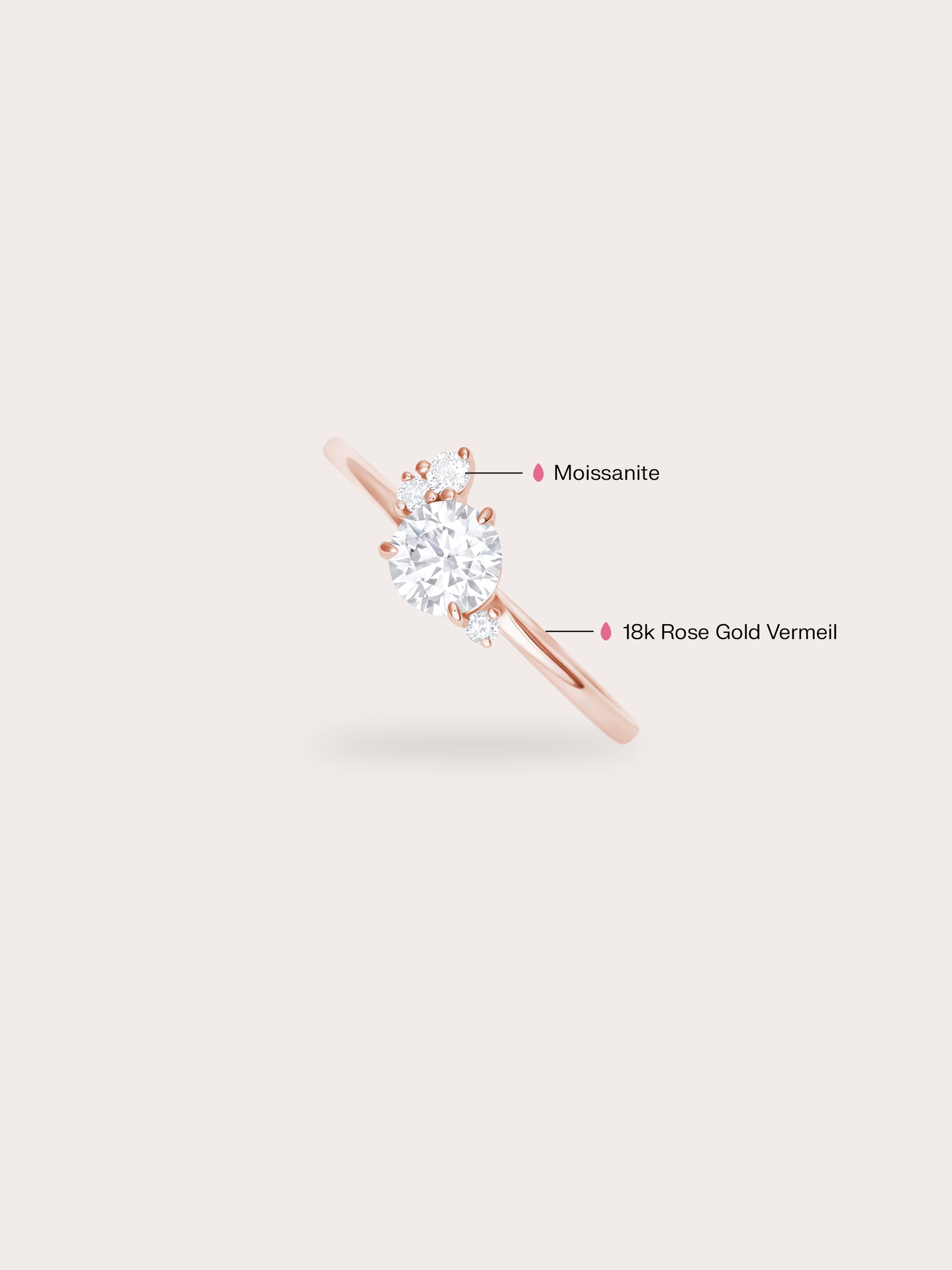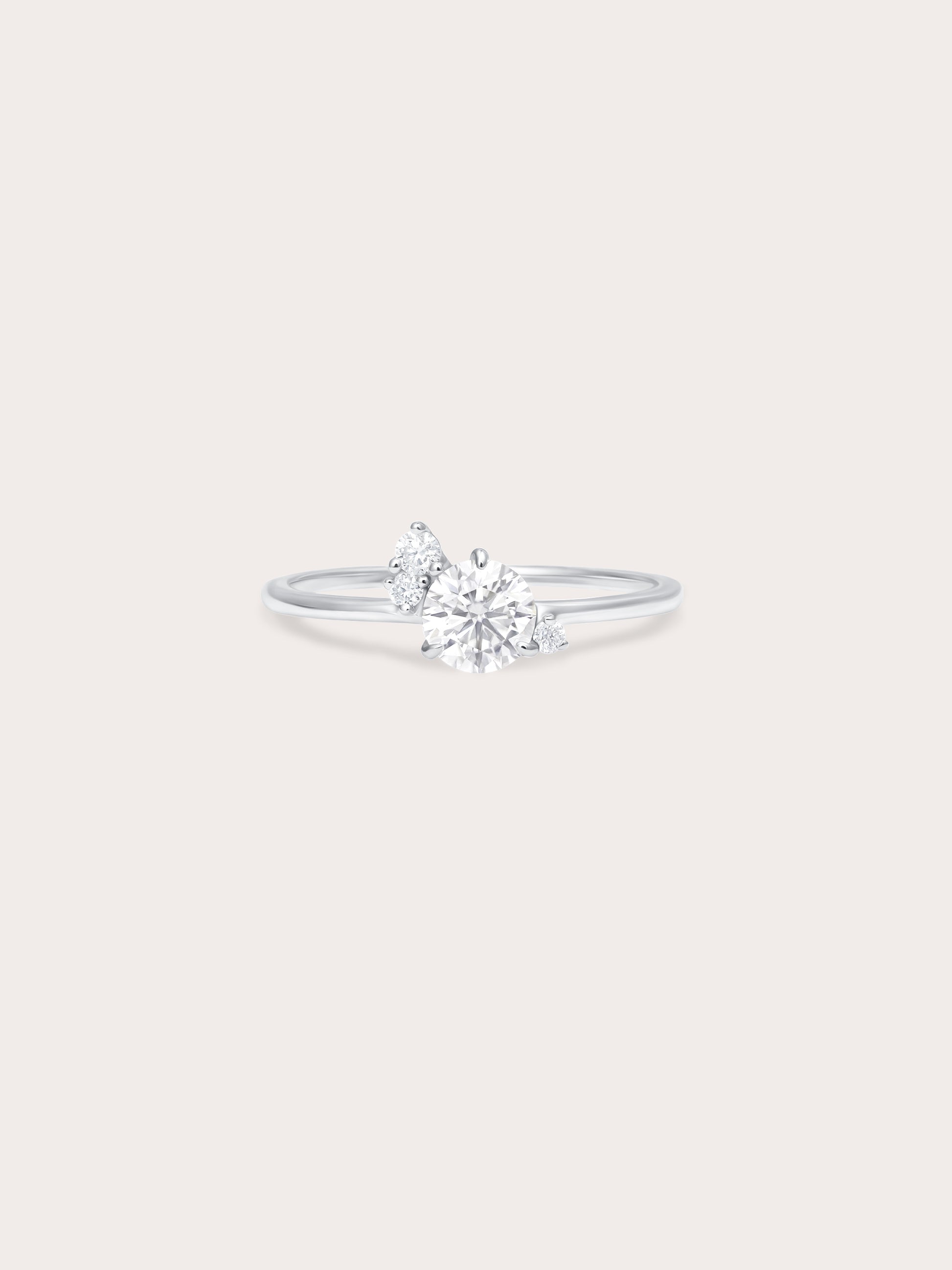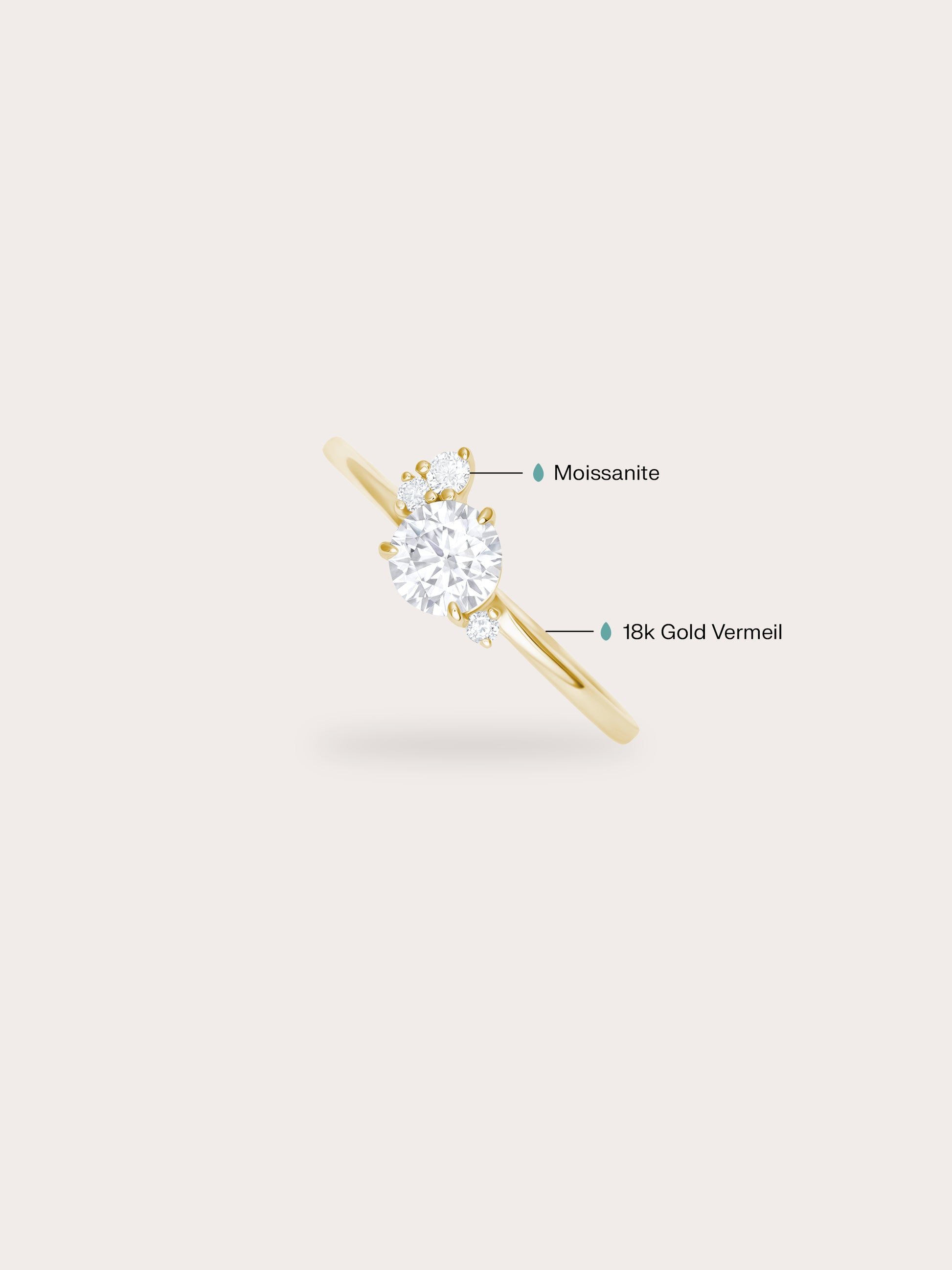 The White Moissanite Cluster Ring features a 0.5ct focal moissanite, framed with three smaller white moissanites (1.5–2mm) for added brilliance. It makes a thoughtful promise ring — whether as a gift for someone special or a symbol of self-love.