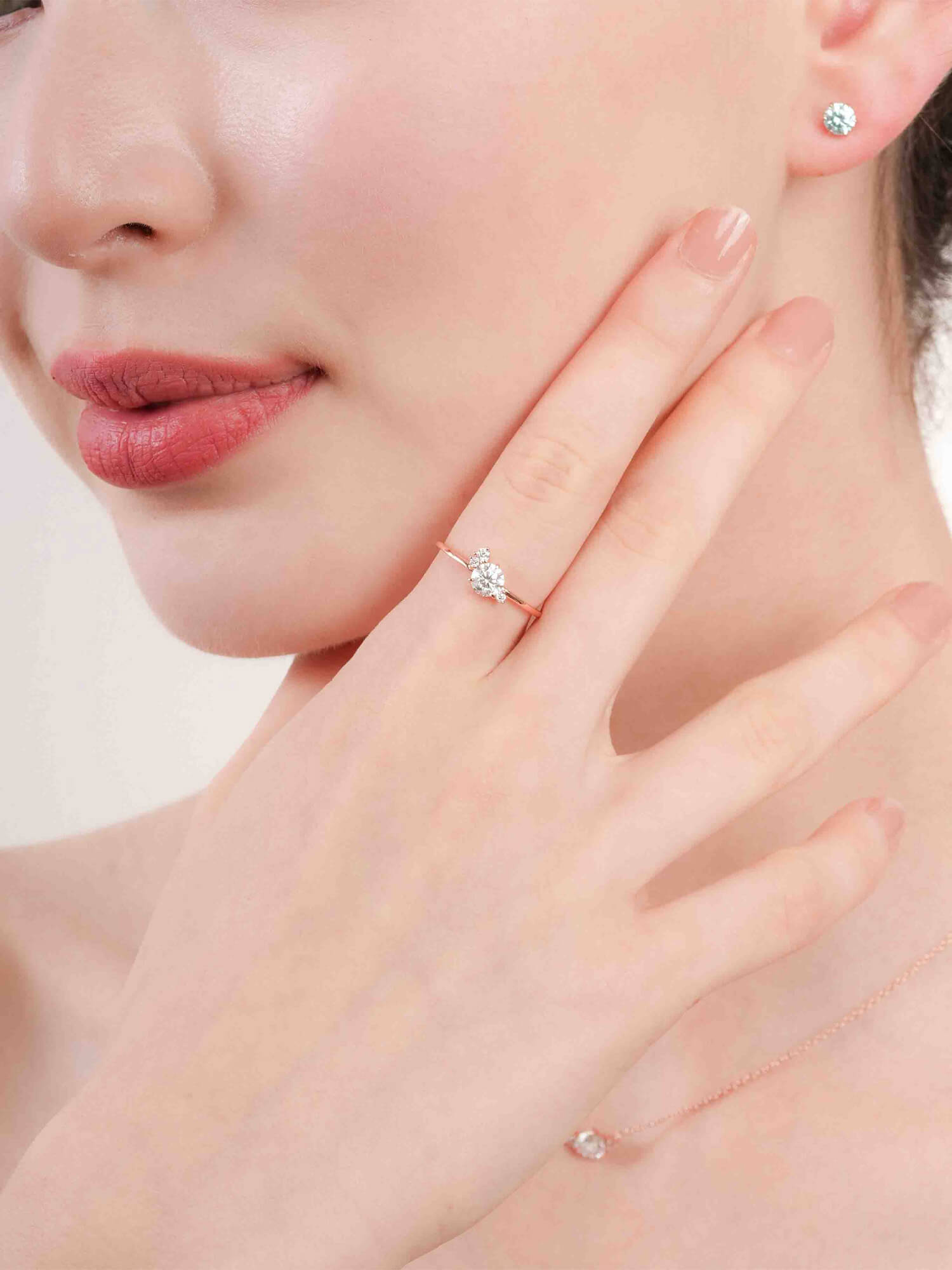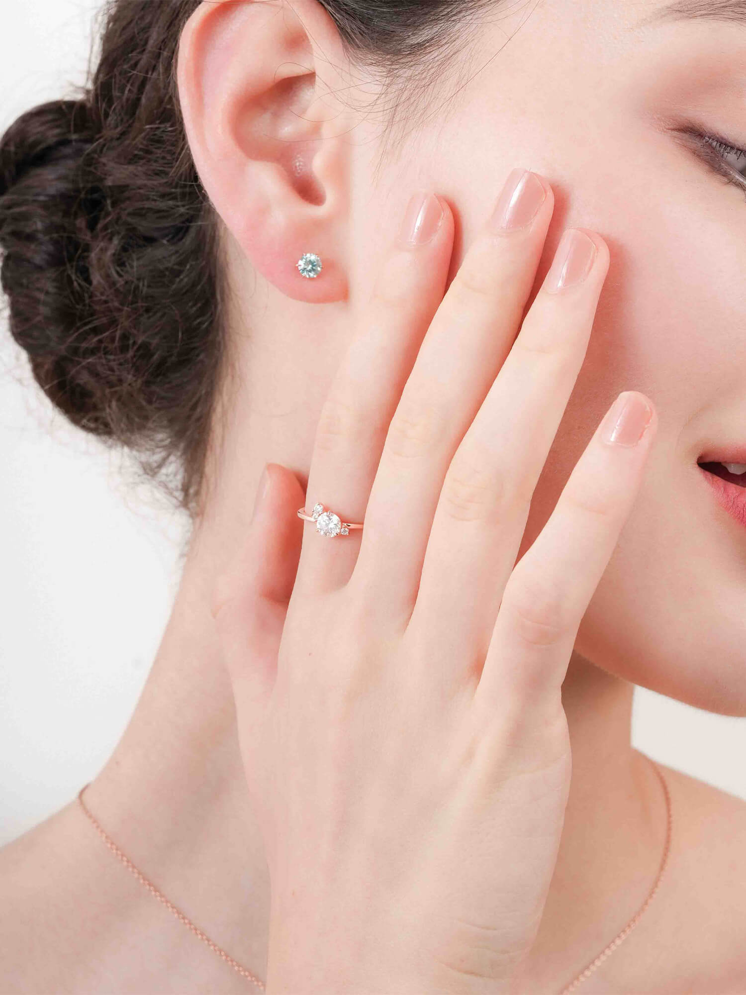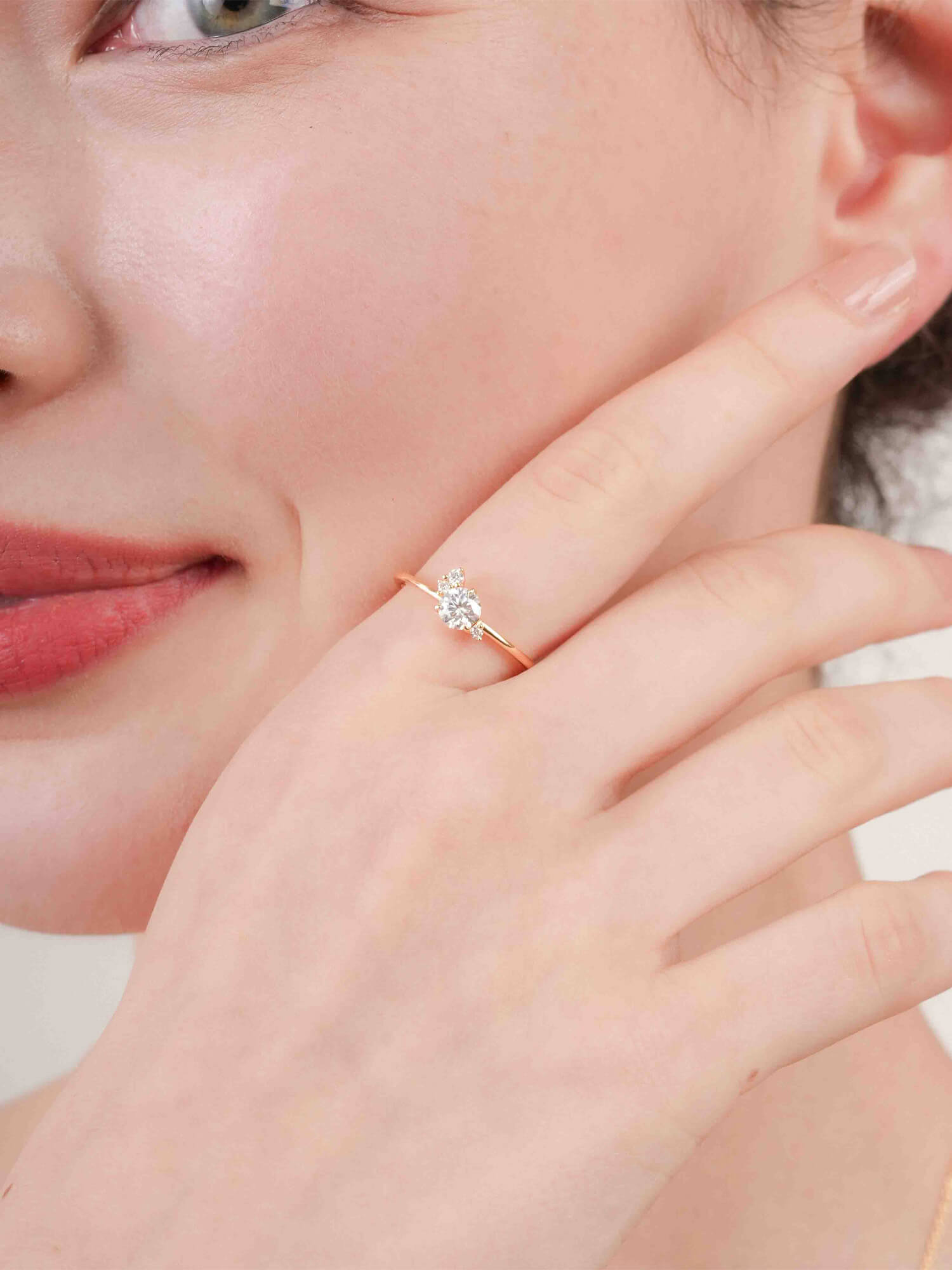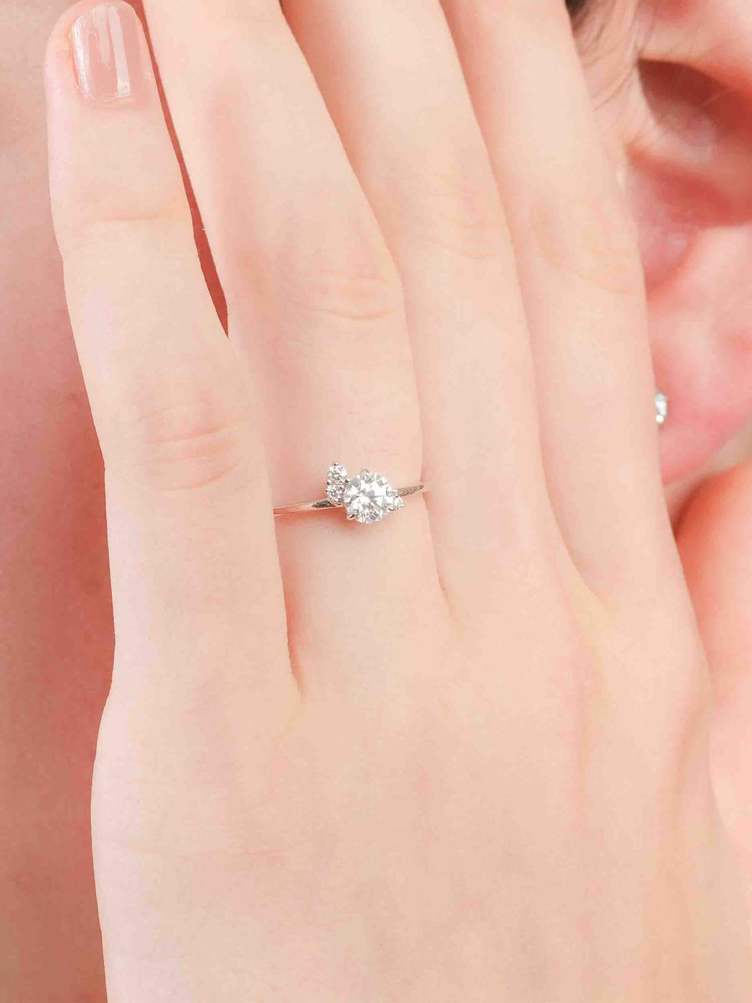 The White Moissanite Cluster Ring features a 0.5ct focal moissanite, framed with three smaller white moissanites (1.5–2mm) for added brilliance. It makes a thoughtful promise ring — whether as a gift for someone special or a symbol of self-love.